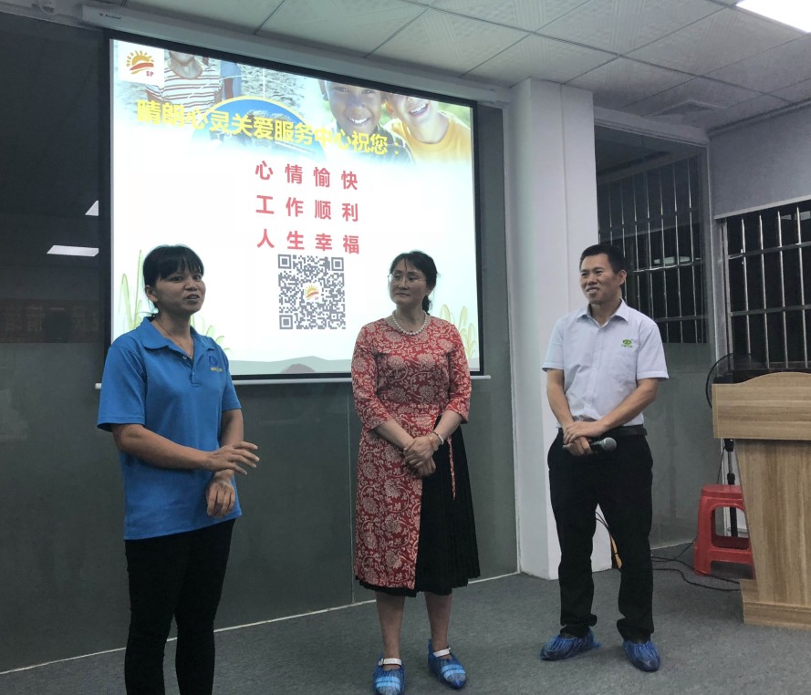 熱烈歡迎石排晴朗心靈關(guān)愛服務(wù)中心蒞臨我們廣有廠培訓(xùn),為了讓我們廣有的家人們工作更順利,生活更和諧,家庭更幸福,特別邀請了石排晴朗心靈關(guān)愛服務(wù)中心的李清林老師為我們授課解惑。